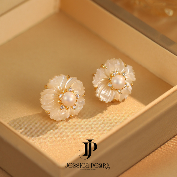 Khuyên tai nữ Camellia Pearl (SKU: JE53)