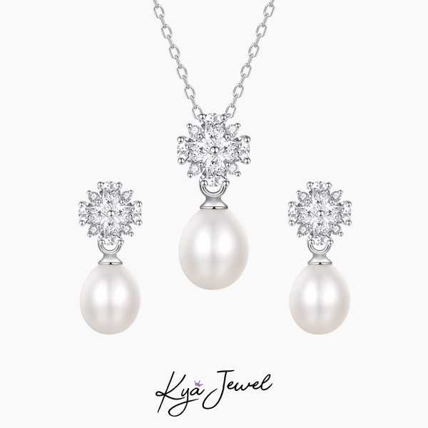 Bộ trang sức nữ Freshwater Pearl Floral từ Kya Jewel với chất liệu Bạc Ý 925 và ngọc trai nước ngọt, đảm bảo độ bền đẹp theo thời gian, cùng người phụ nữ bạn yêu thương lưu giữ những khoảnh khắc trân quý. Đặc biệt, những viên đá Cz được khéo léo đính tỉ mỉ trên bộ trang sức càng làm tăng thêm vẻ lộng lẫy. Hãy để món quà này thay lời yêu thương bạn dành cho Mẹ.