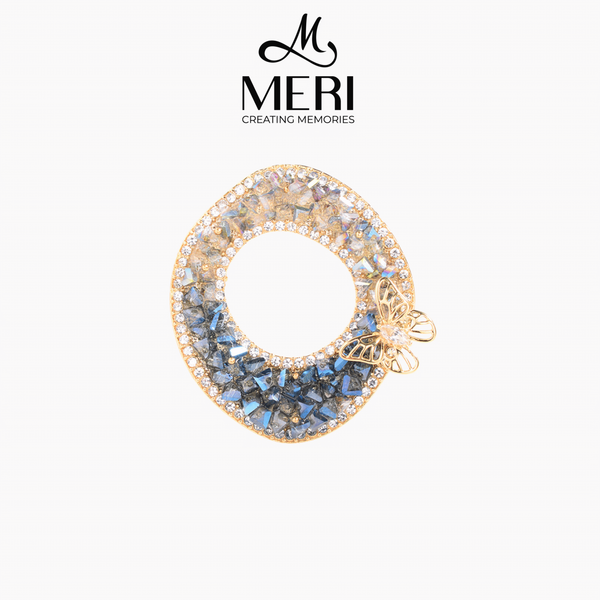 Tựa giọt sương long lanh trên cánh hoa trong đêm trăng, thiết kế ombre trắng – xám – xanh kết hợp họa tiết bướm mang lại nét nhẹ nhàng, thanh thoát và đầy cuốn hút.